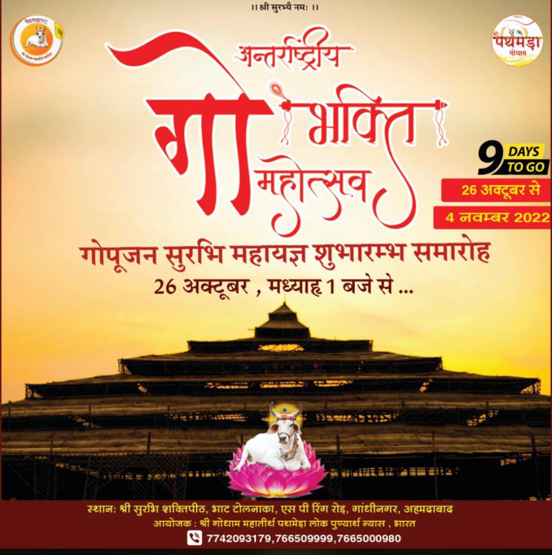 लोक प्रसिद्ध गोसेवा संस्थान श्री गोधाम महातीर्थ पथमेड़ा के संस्थापक श्रद्धेय गोऋषि स्वामी श्री दत्तशरणानंदजी महाराज के पावन सानिध्य में आयोजित अंतर्राष्ट्रीय गोभक्ति महोत्सव के अंतर्गत सप्त गोमाता मंदिर में गोपूजन के साथ हुई महोत्सव की शुरुआत के सुंदर दृश्य।